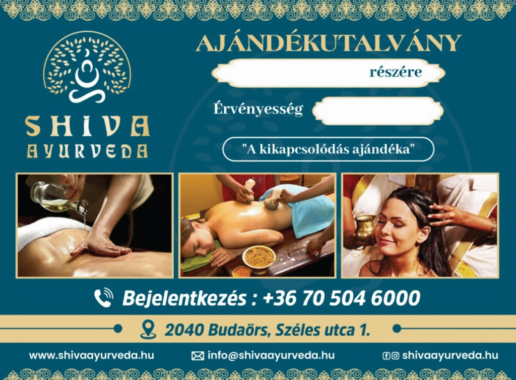 Shiva Ayurveda Ajándékkártya: Több mint masszázs, egy testi-lelki egyensúly ajándéka. A legcsodálatosabb ajándék nem egy tárgy, hanem a törődés.